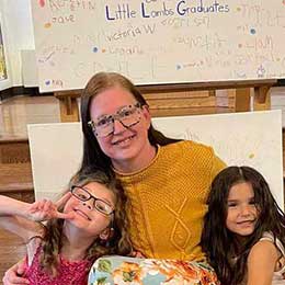 Mrs. Lund is entering her 11th year at Little Lambs. She started as a substitute teacher, became a lead teacher, and is now the director. She lives with her husband, Greg, and has two daughters, Hope and Sophronia. In her free time, she enjoys reading, gardening, doing ancestry research, expanding her social-emotional learning knowledge, and spending time with her family.